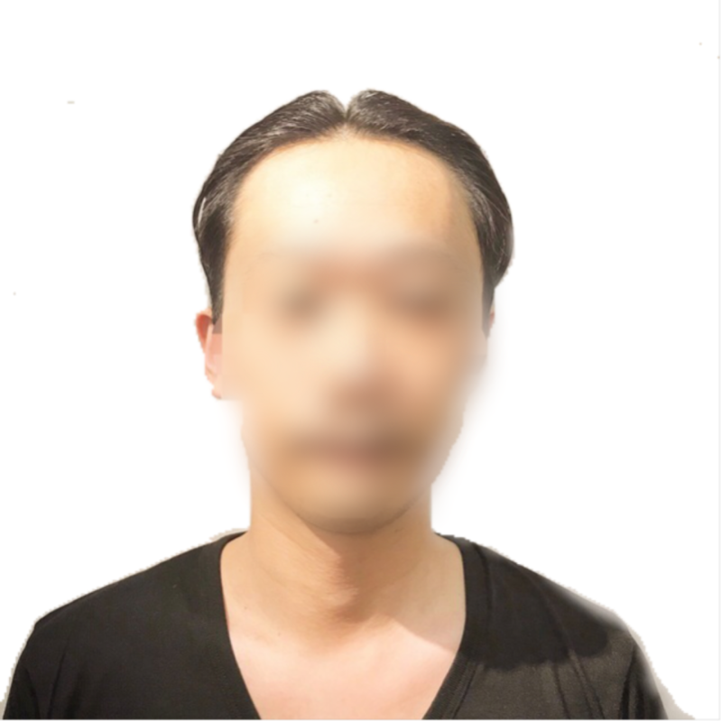 前頭部が年々後退していってしまうのが悩みな方。仕方なく前髪を伸ばしている状態。 前髪を短くする事で、額が狭く見えU字がカバーできました!