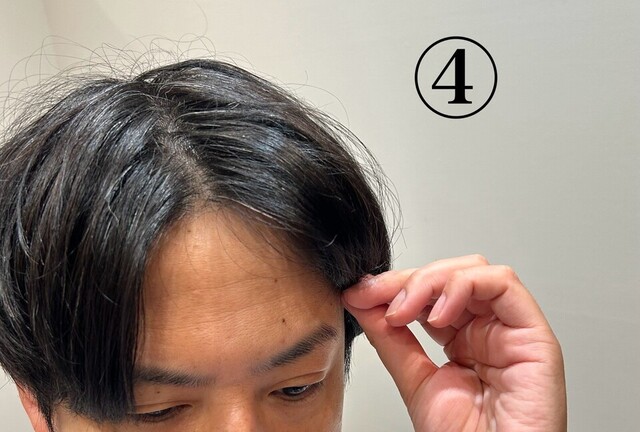 前髪がペタンと潰れると、どうしても分け目やM字部分が目立ちます。