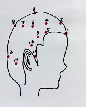 1 神庭(しんてい) 頭痛、めまい、不眠、老化防止